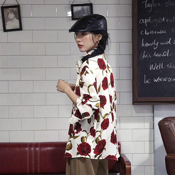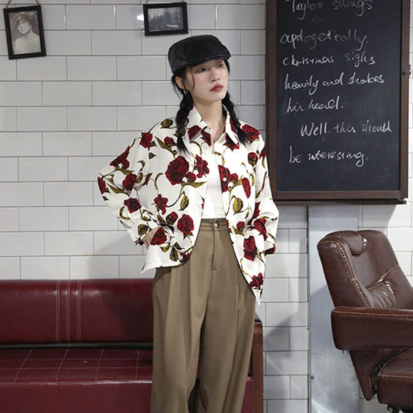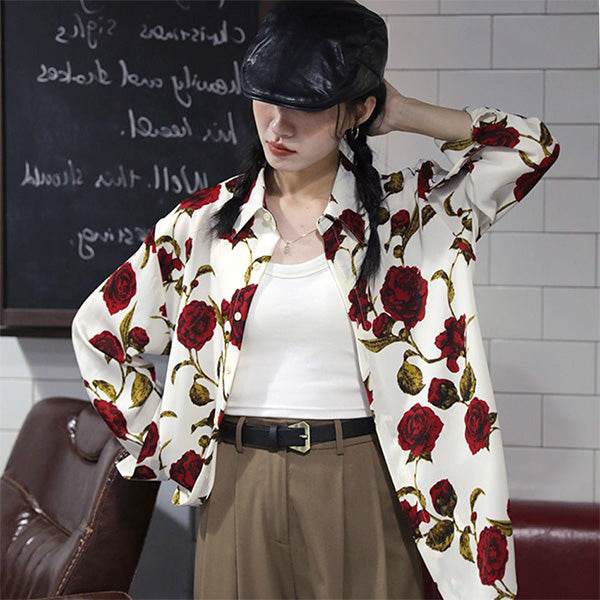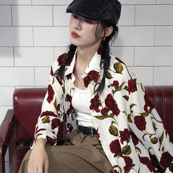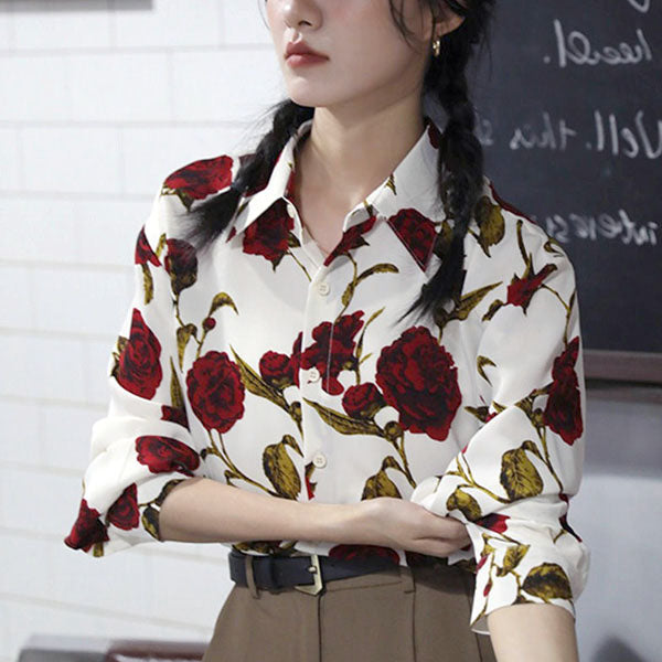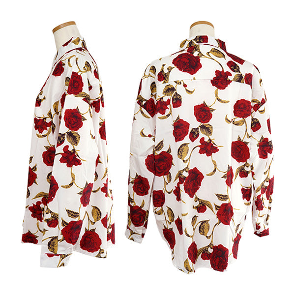 クラシカルなローズプリントが印象的な長袖シャツ。
