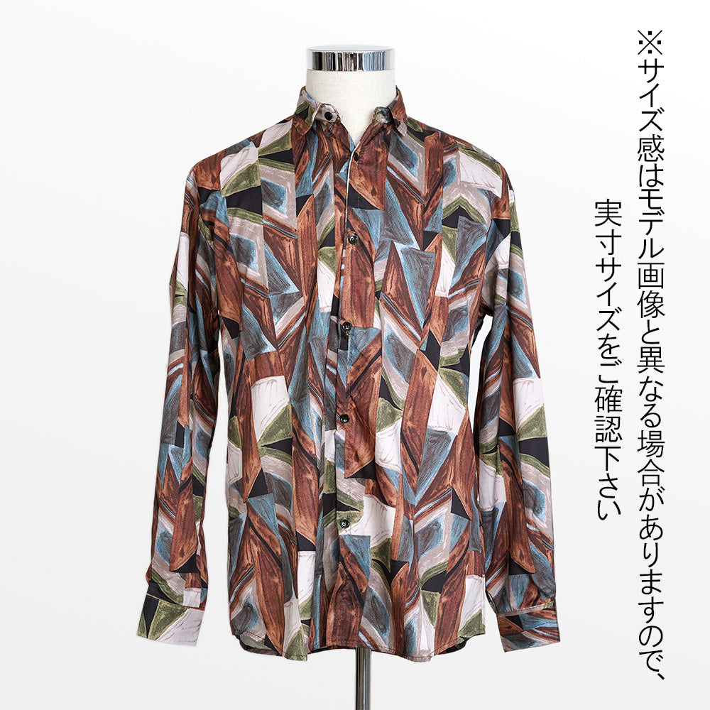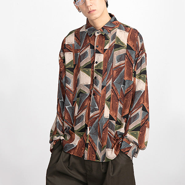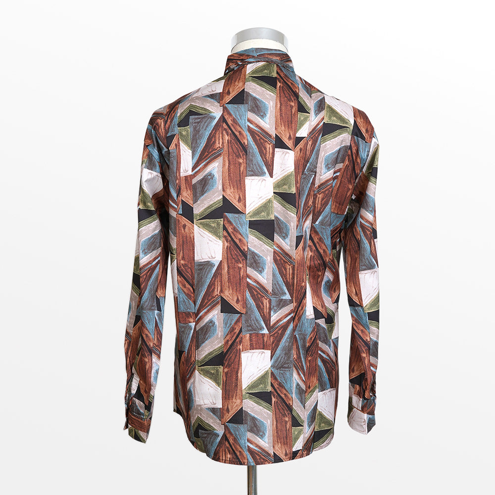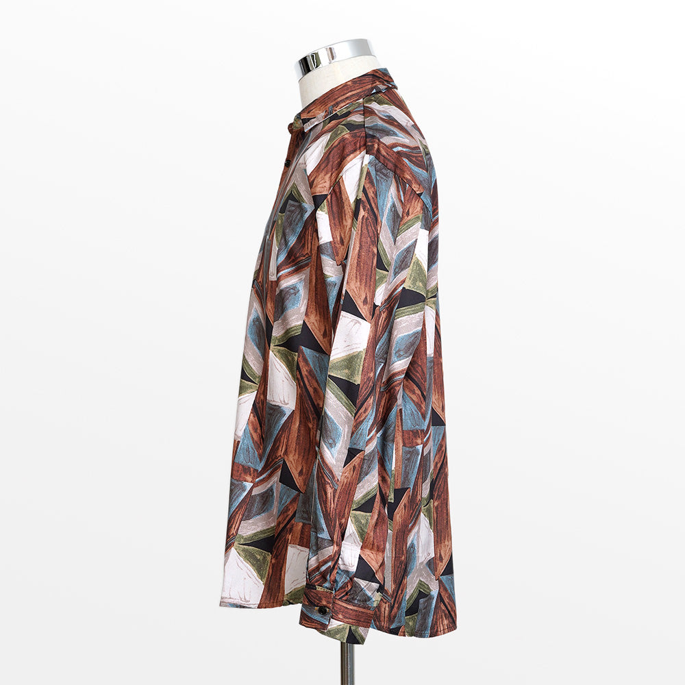 油絵タッチの幾何学模様がおしゃれな長袖シャツ。