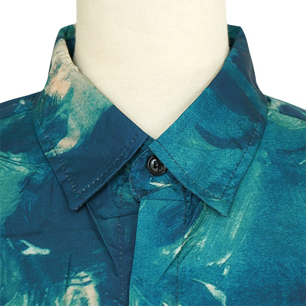 グリーンの深い色彩が魅力的なボタニカル柄シャツ。