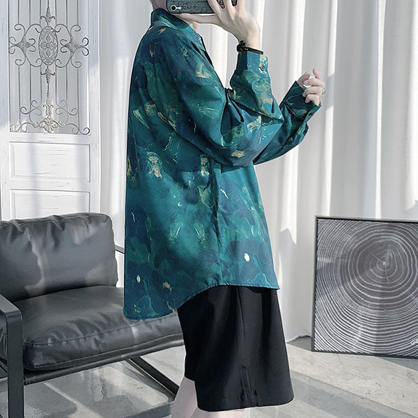 GREENボタニカルアートの長袖シャツ