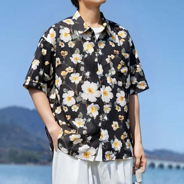 シックなフローラル柄の半袖シャツ。