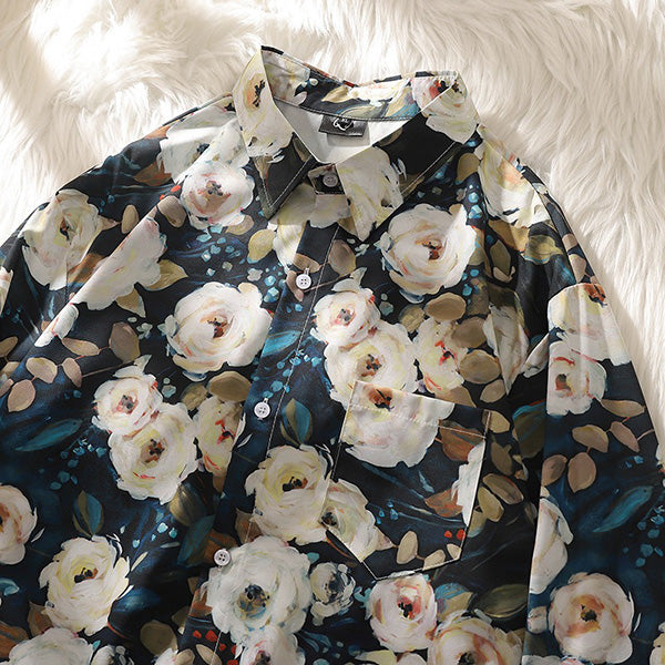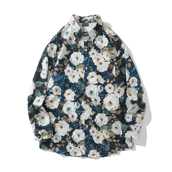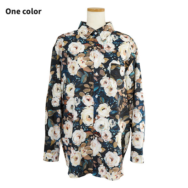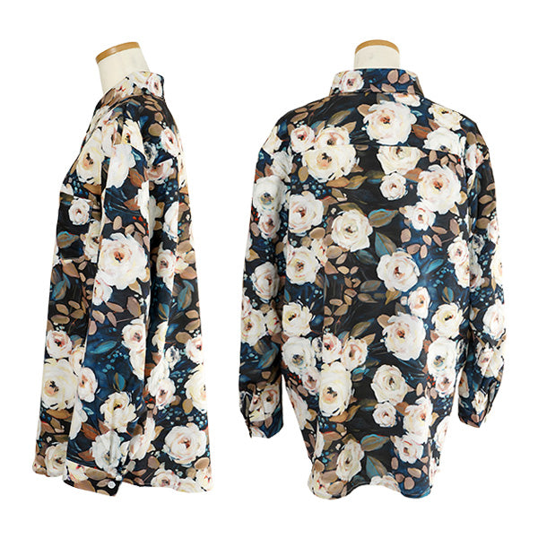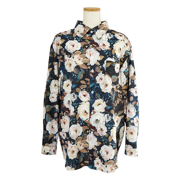 油絵のような雰囲気たっぷりの花柄長袖シャツ。