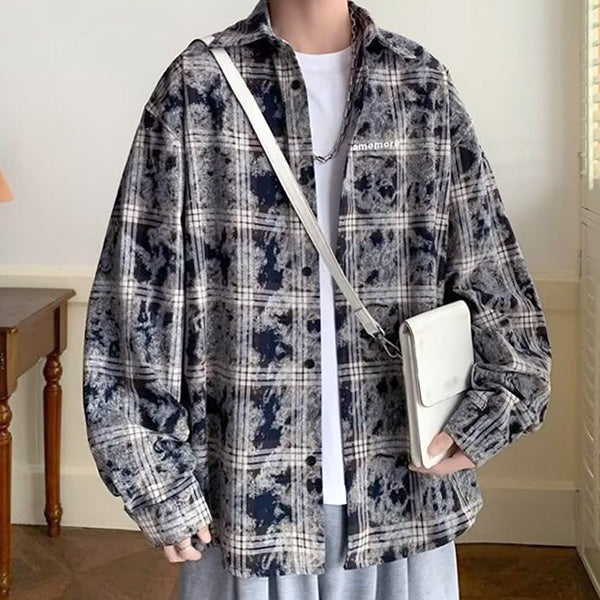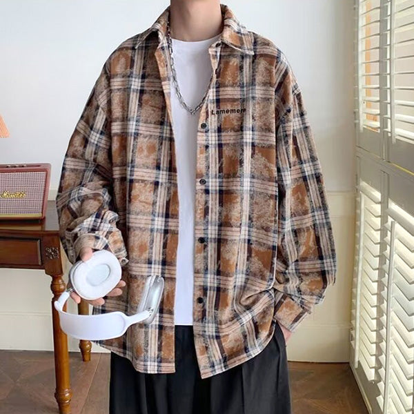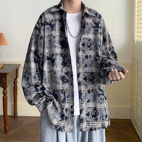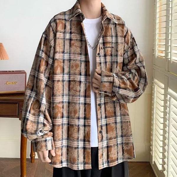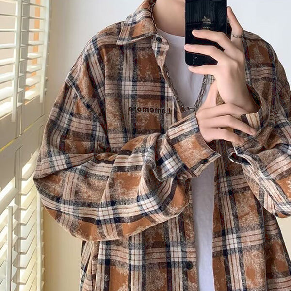トレンドのオーバーサイズシルエットが魅力のチェック柄長袖シャツ。