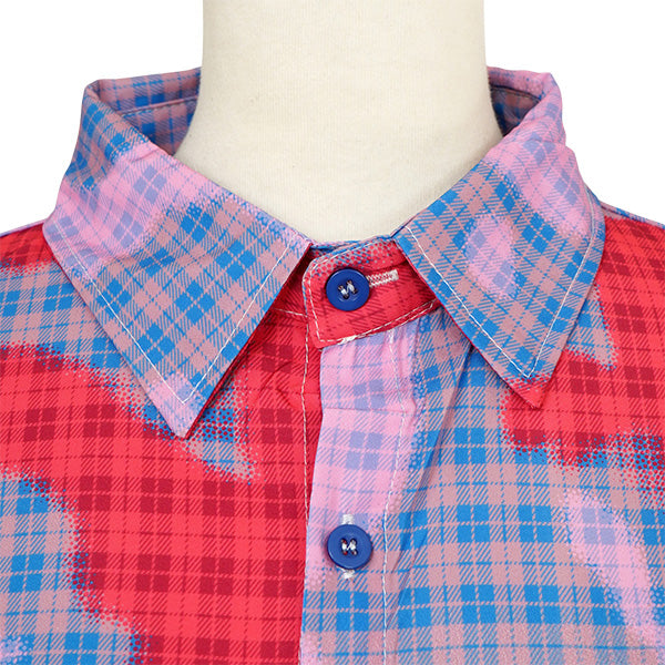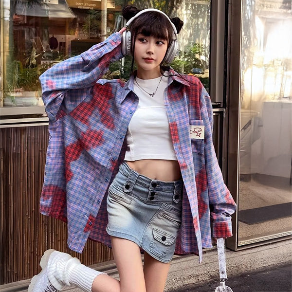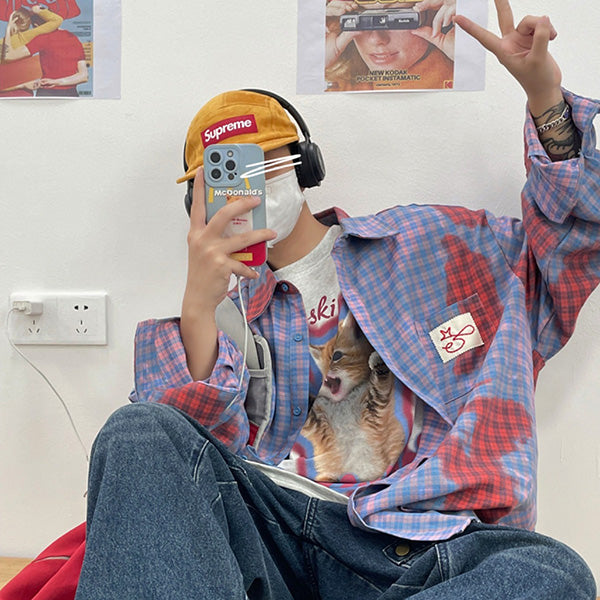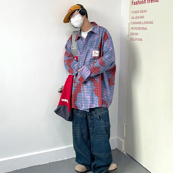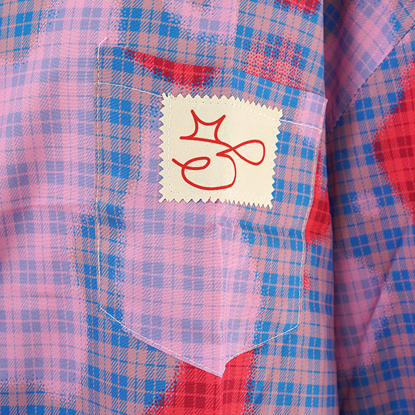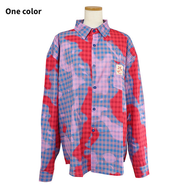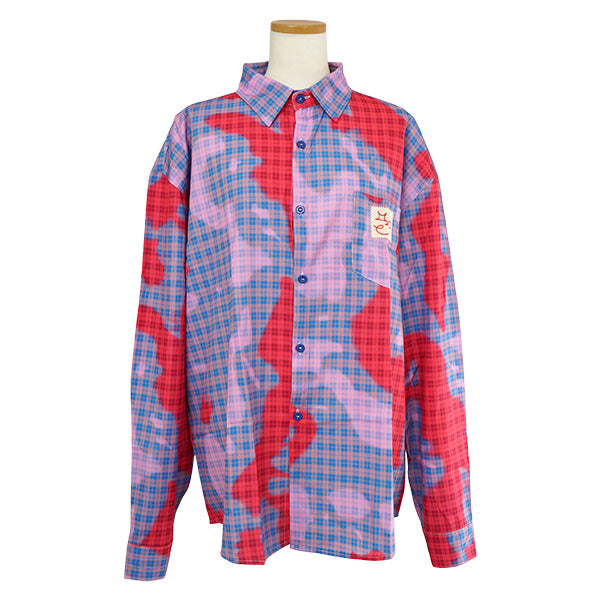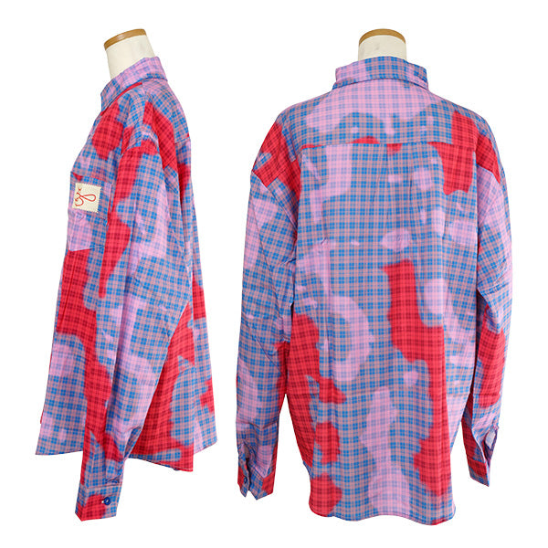 ピンク×赤×ブルーの掛け合わせが個性を放つ、ニュアンスチェック長袖シャツ。