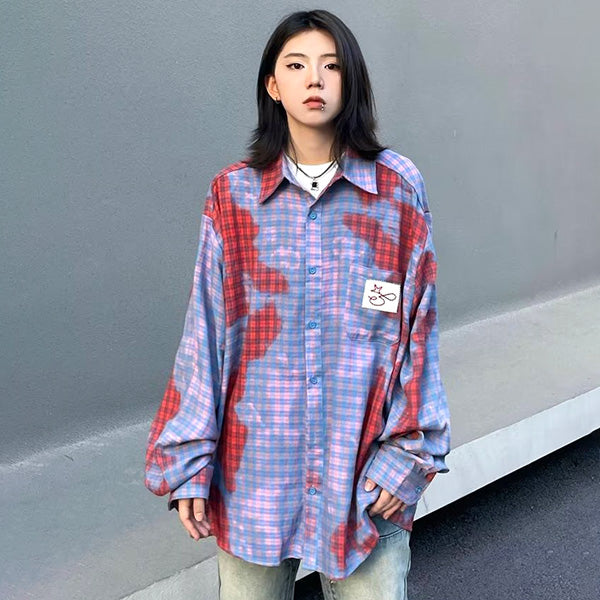 タイダイ模様とチェック柄をミックスさせたレアなグラフィック。