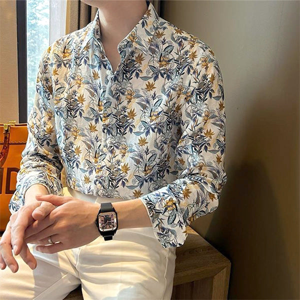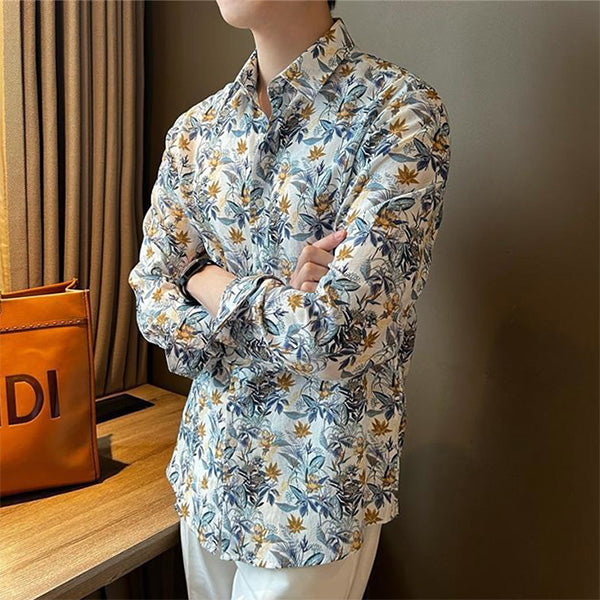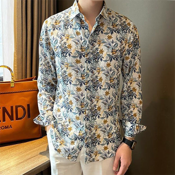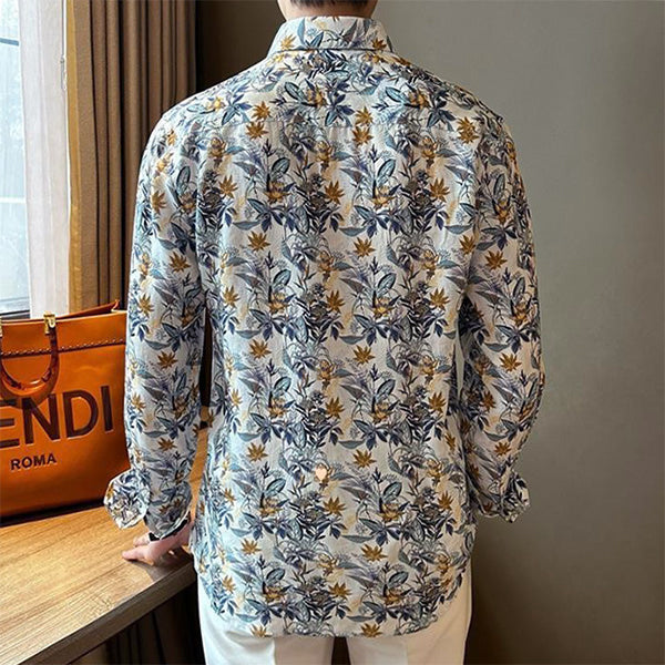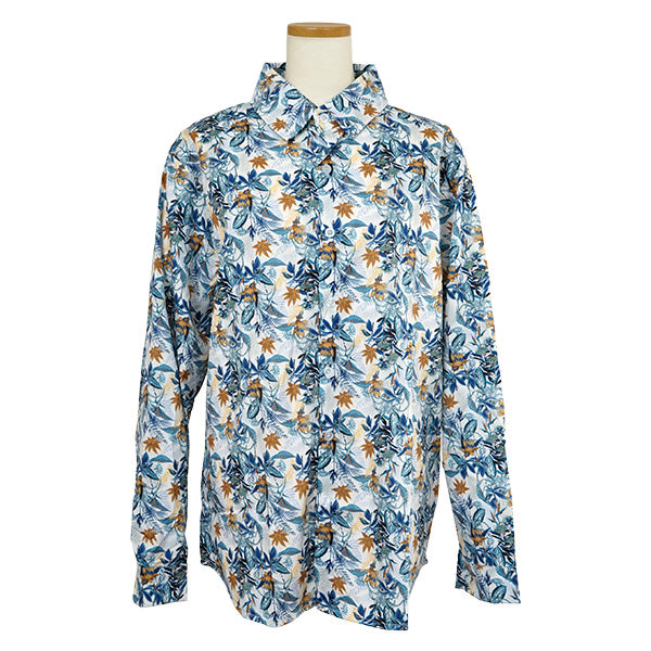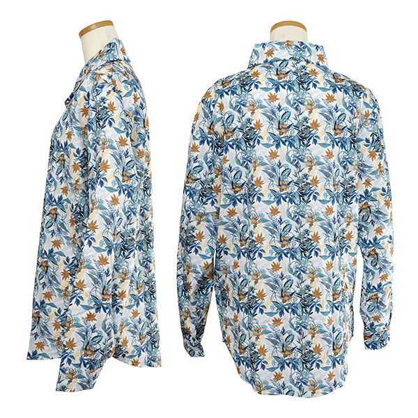 大人っぽく決まるボタニカルプリントの長袖シャツ。