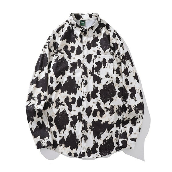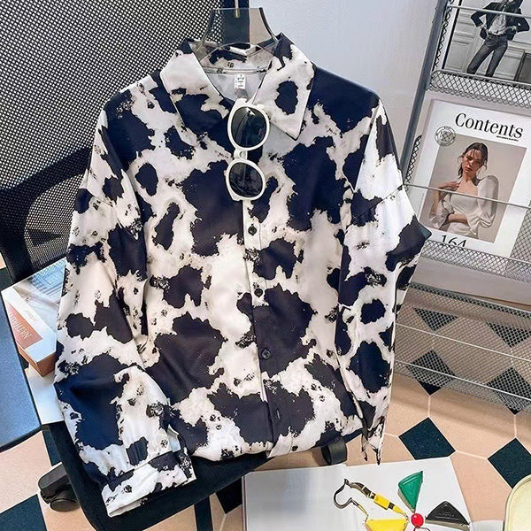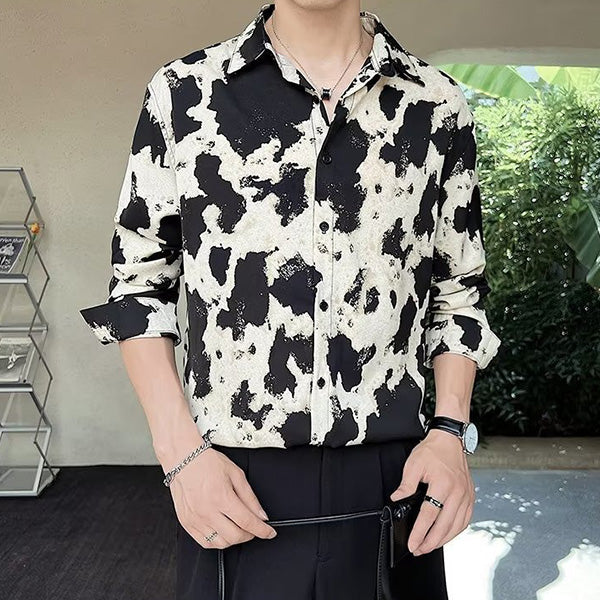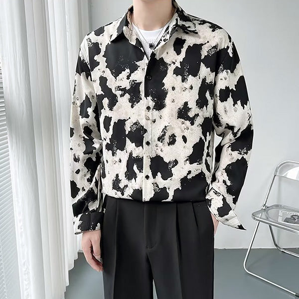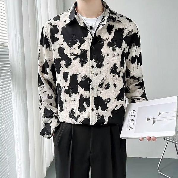 インクを散らしたような、個性派デザインの長袖シャツ。