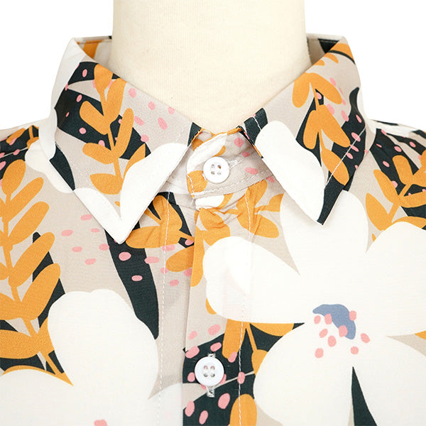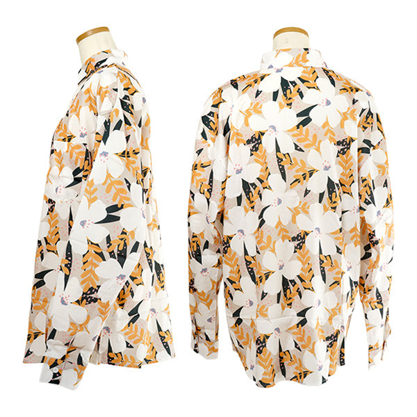 コーデがぱっと華やかになる花柄プリントの長袖シャツ。